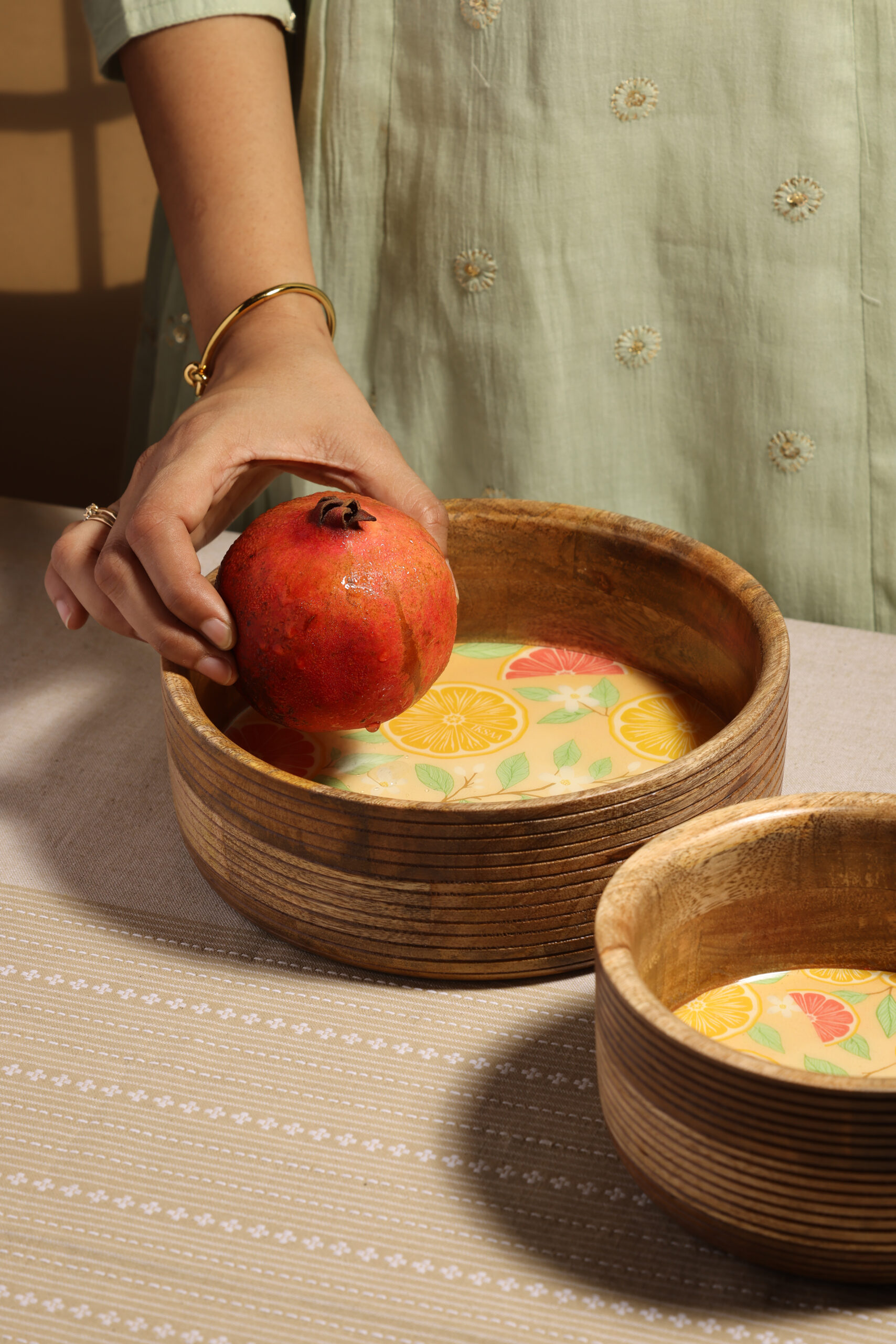 COLOUR: NATURAL WOOD WITH YELLOW BASE & CITRUS FRUIT PRINT