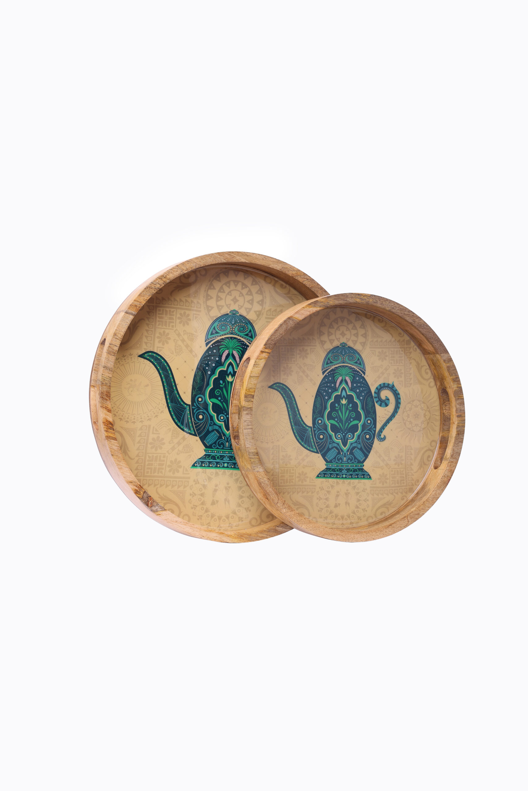 HANDCRAFTED TRAY SET INSPIRED BY ASSAM’S HERITAGE – FEATURING THE TRADITIONAL KETTLE MOTIF WITH INTRICATE LOCAL PATTERNS